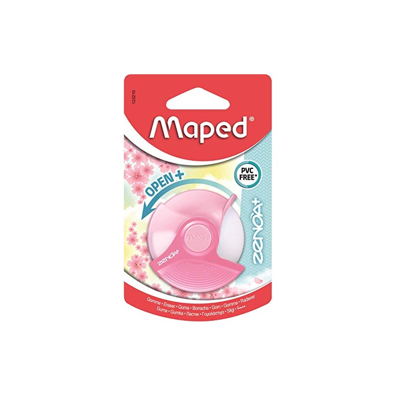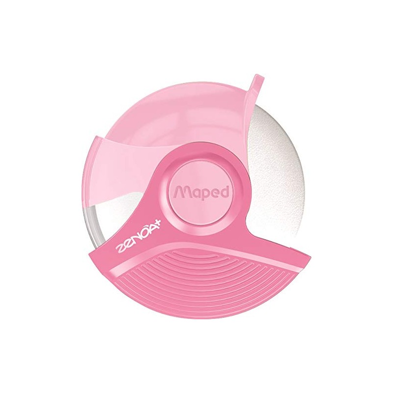 Maped - Zenoa Plus Eraser - Round White Eraser with Protective Case 180° Rotatable - Phthalate Free - PVC Free - Pastel Pink