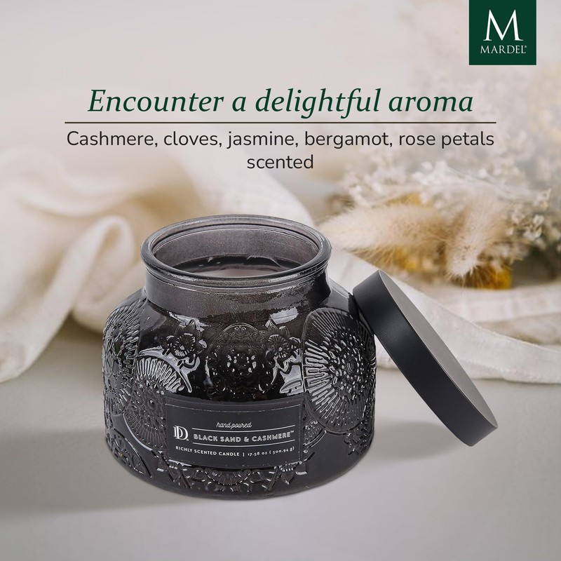 - Elegant Embossed Design: Housed in a taupe glass jar featuring an exquisite floral pattern, this bedroom and kitchen candle adds a touch of sophistication to any decor. This embossed fancy candle with lid evokes a stylish and delicate appearance.