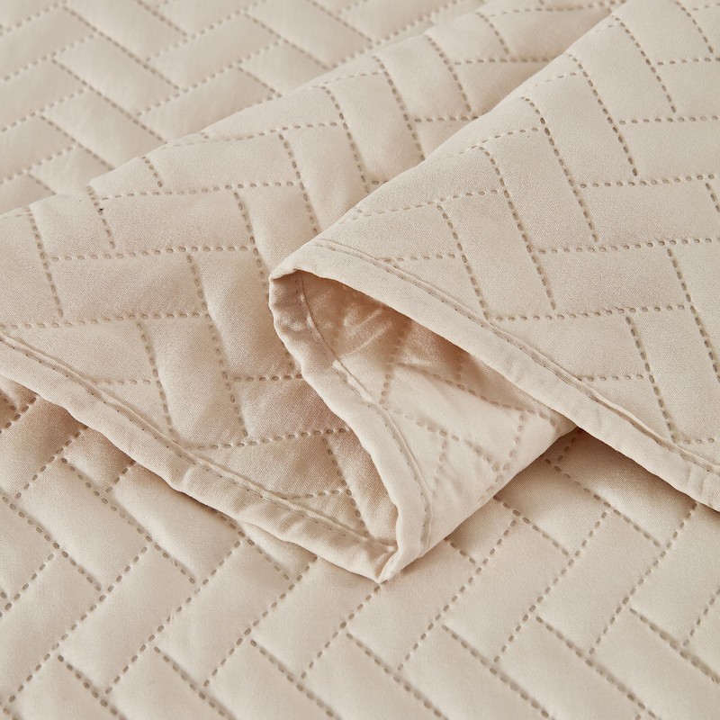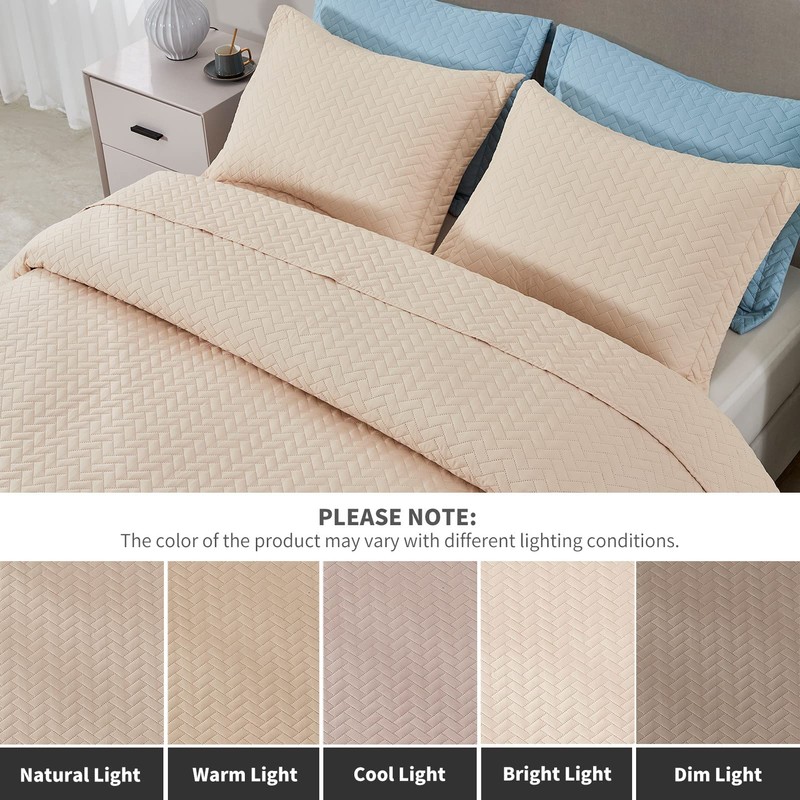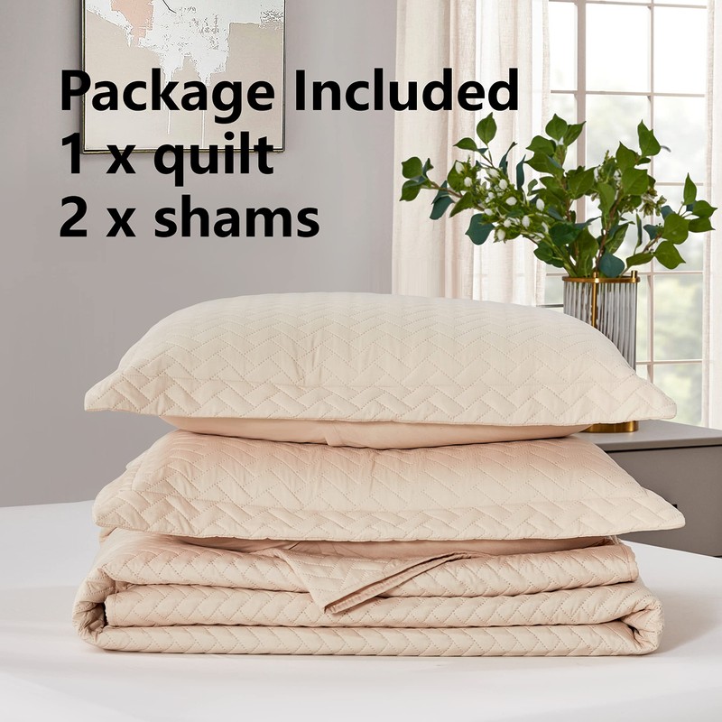 Maple&Stone Quilt Set California King Size, Lightweight Beige Bedspread Ultrasonic Chevron Pattern Light Coverlet for All Season Comforter Bedding Decor - 3 Piece Bed Cover Sets