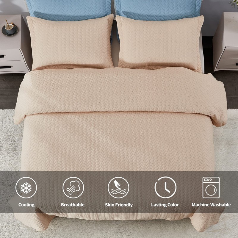 - 【SIMPLE AND CLASSIC】-- Our bedding cover set features a classic chevron pattern with pinsonic quilting technique lending contemporary texture for a chic, on-trend look. Perfect for your bedroom decor and easy to match with other styles.