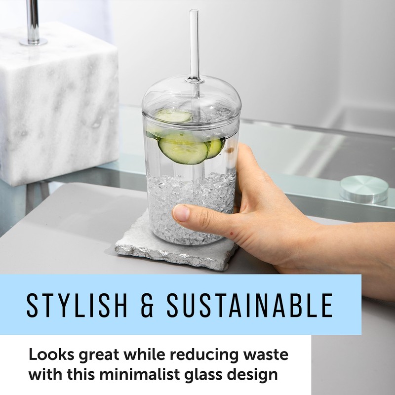 - Sirve un regalo elegante: este vaso de vidrio reimaginado con tapa y popote es una manera pensada de mostrar que los aprecias. Muestra su bebida de elección mientras mantiene su látigo de frappe seguro. Animándolos a pensar en ti cada vez que toman un sorbo