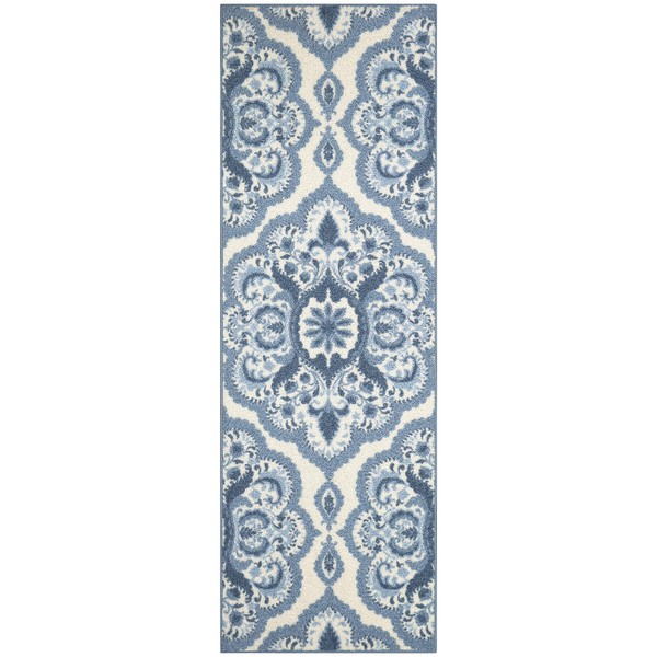 Maples Rugs Vivian Medallion Runner Rug Non Slip Hallway Entry Carpet [Made in USA], 2 x 6, Blue