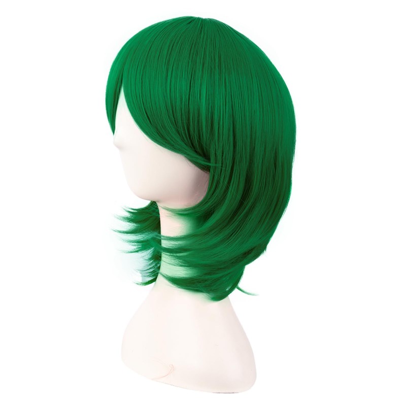 MapofBeauty 40cm Short Wig with Side Bangs Synthetic Fiber Cosplay Wig (Grass Green)