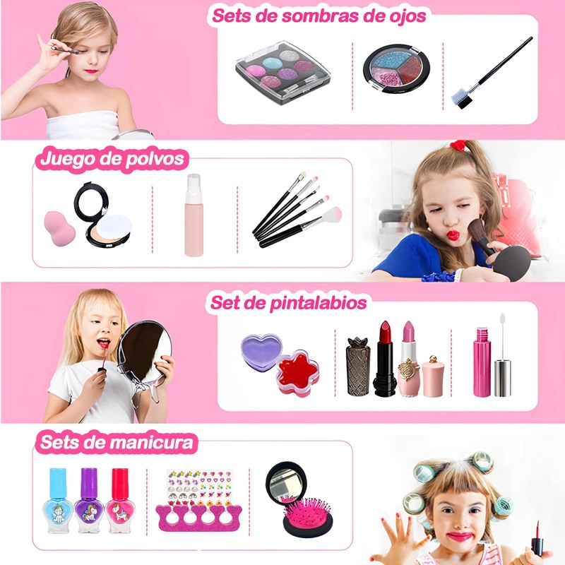 - 🎁【Fácil de transportar y almacenar】: Que puede almacenar fácilmente todos los cosméticos,Fácil de transportar para que las niñas puedan jugar con sus adorados juguetes de maquillaje lavables en cualquier lugar, como por ejemplo, al viajar a fiestas de maquillaje.