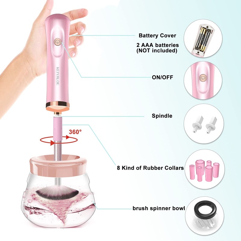 - 【Material premium y portátil】Este limpiador de brochas de maquillaje incluye un interruptor eléctrico ergonómico para un funcionamiento fácil e intuitivo. Diseño de baja vibración, respetuoso con el medio ambiente, material impermeable. Además, el limpiador de brochas de maquillaje funciona con 2 pilas AAA (no incluidas) y es muy portátil, muy cómodo de llevar.