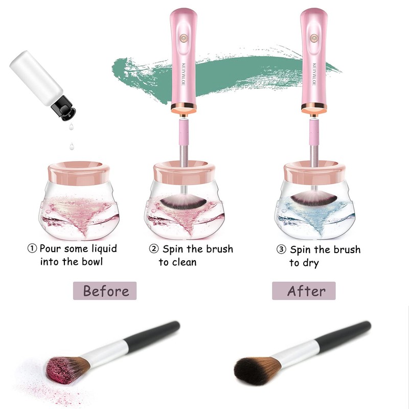 - 【Fácil de usar y ahorra tiempo】Construido en un motor superpotente, 12000 – 13000 rpm de alta velocidad de rotación, ayuda a limpiar y secar las brochas de maquillaje profunda y rápidamente. Para bucear, girar, enjuagar, girar, con el limpiador automático de brochas de maquillaje, puedes limpiar y secar perfectamente las brochas en cuestión de segundos. Esto hará que la aplicación de maquillaje sea mucho más rápida y agradable.