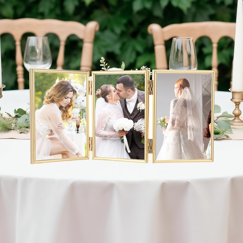 - 【High Quality】Our 4x6 folding picture frame features an exquisite gold brass frame and tempered glass decoration, sturdy and weighted to stand stably on any tabletop. It provides a clear display of your precious memories from every angle.