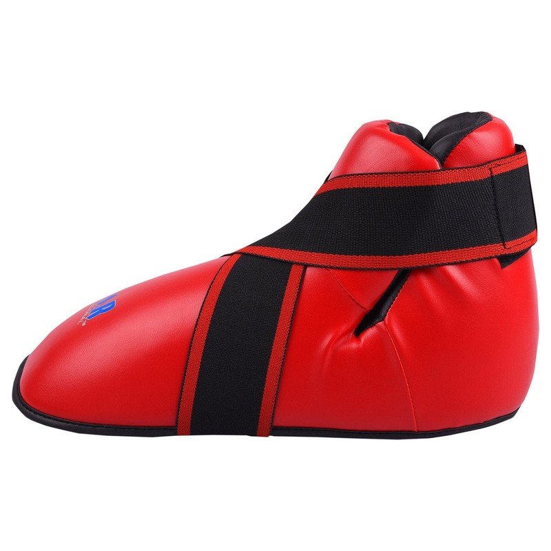 MAR | Red Martial Arts Foot Protector for Karate, Kickboxing, Muay Thai, Taekwondo, Karate K1 Kick Boots, Taekwondo Foot Protectors, Moulded Foam Padding Elasticated Toe Loops (Large)