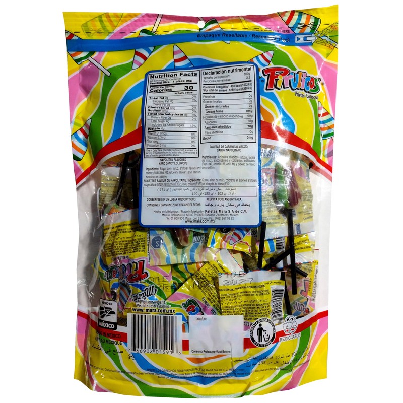 Mara Pirulicos - Paleta de caramelo macizo sabor napolitano - 40 piezas - 320 g