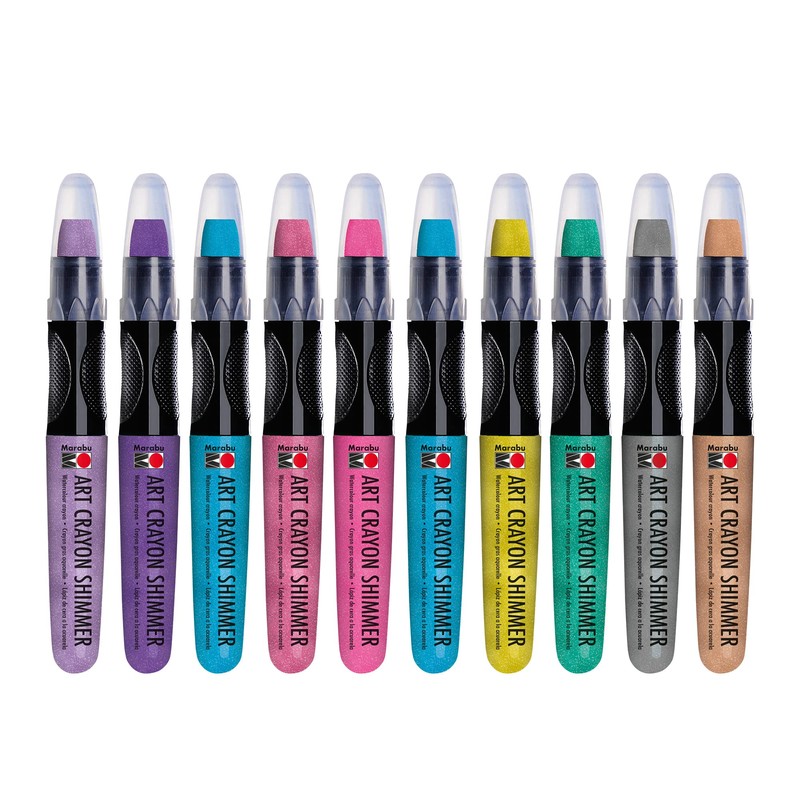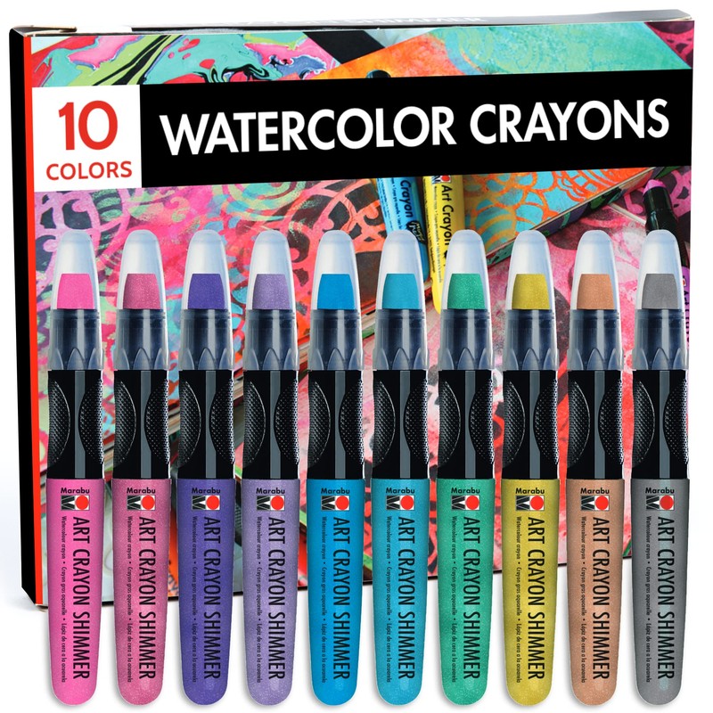 - 10 SHIMMERY COLORS - This set includes all 10 metallic glittery art crayons. Check out Marabu's assortment of 36 basic & metallic colors of watercolor gel crayons.