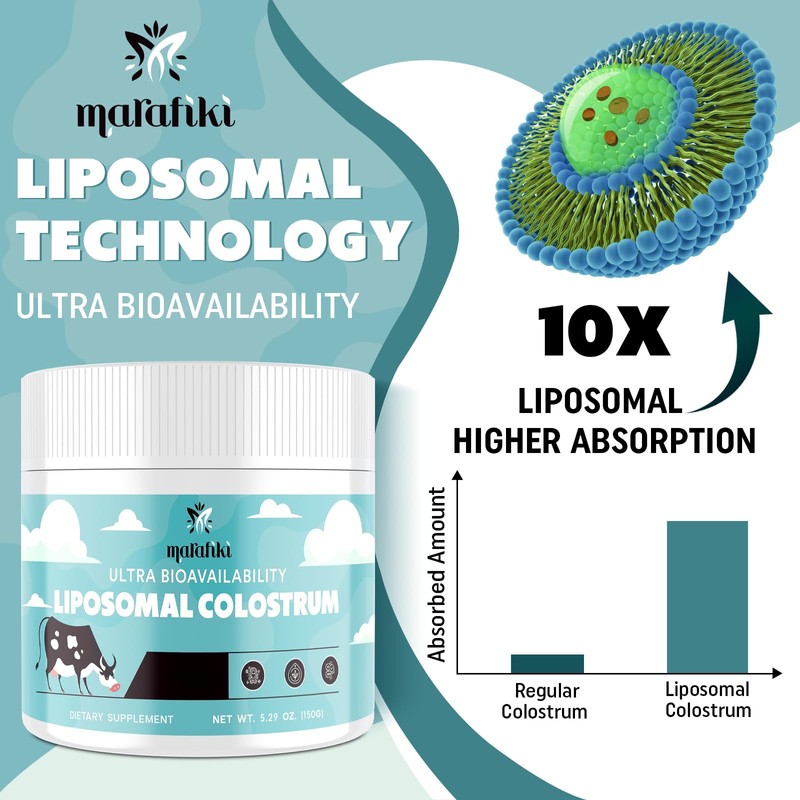 Marafiki Liposomal Bovine Colostrum Supplement - Grass Fed Colostrum Powder - High Bioavailability, Easy to Mix (60 Servings)