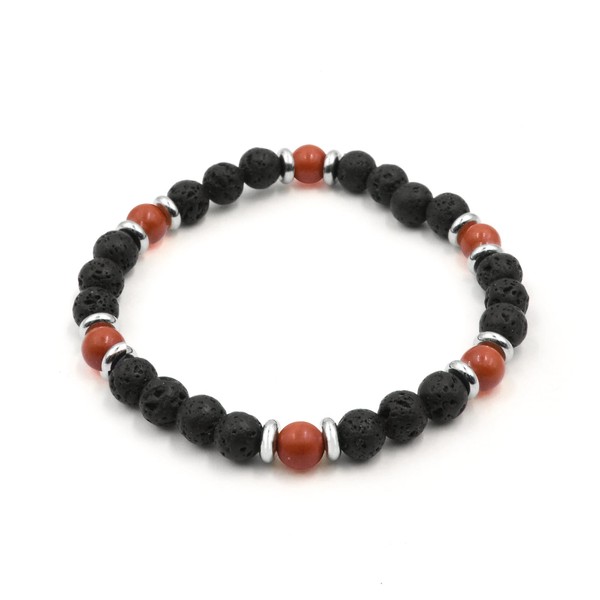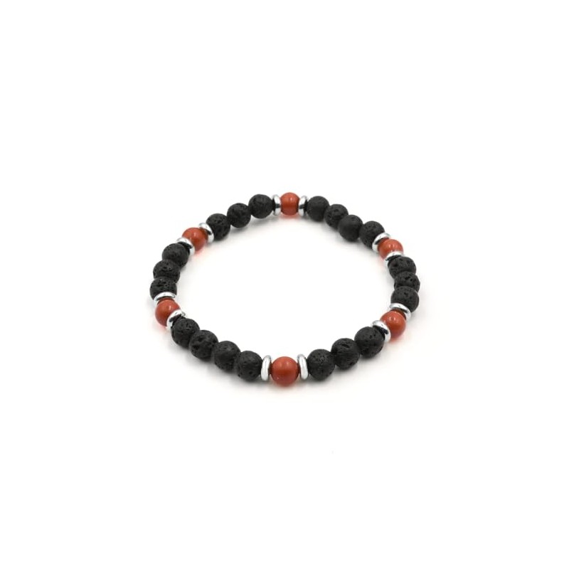 MARARDI Bracelet made of natural volcanic rock lava 6 mm - positive energy, emotional balance and stress relief, adjustable, men and women, piedra
