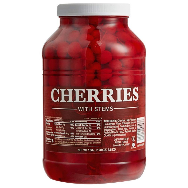 Maraschino Cherries with Stems 1 Gallon Jar - 4/Case