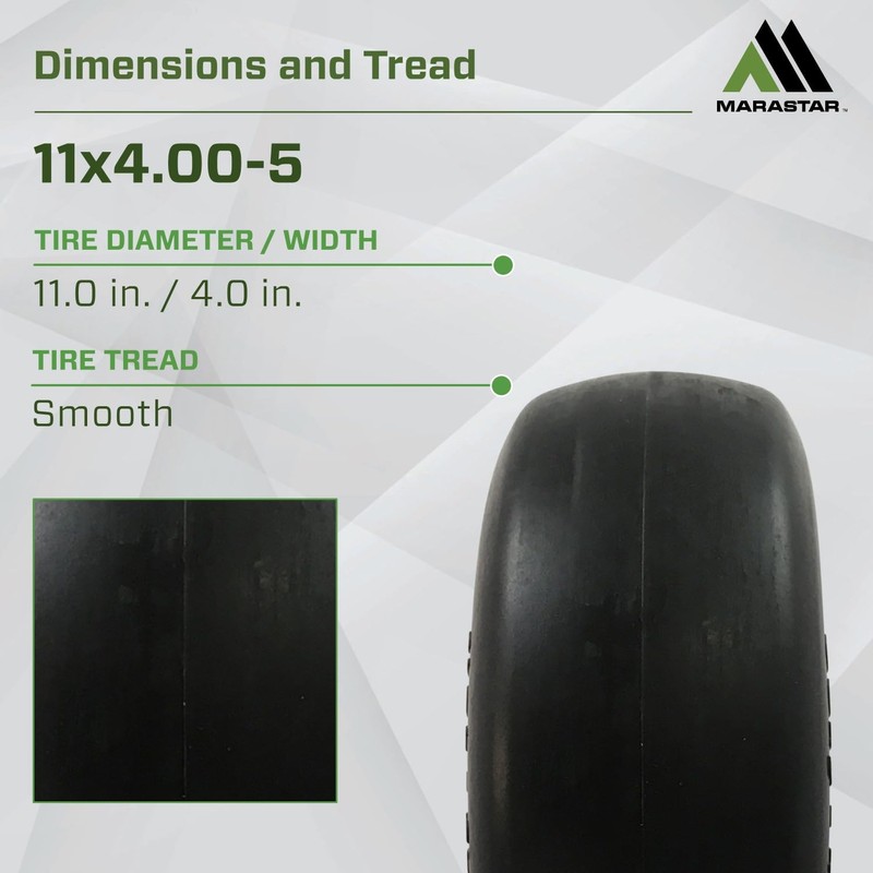MARASTAR MARASTAR 00232-2PK Universal Fit Flat-Free 11x4.00-5 Tire and Wheel Assembly, Zero Turn Lawn Mower Replacement Tires, Smooth Tread, Adapter Kit included, 2 pack