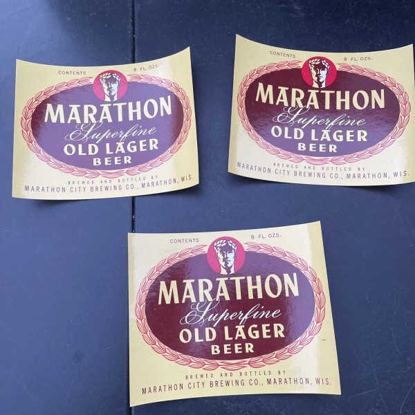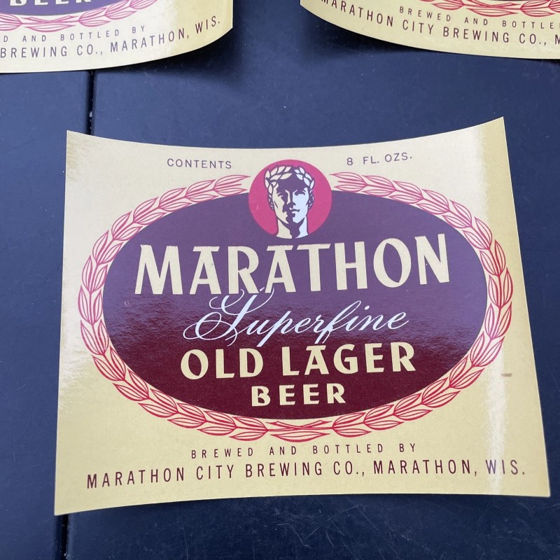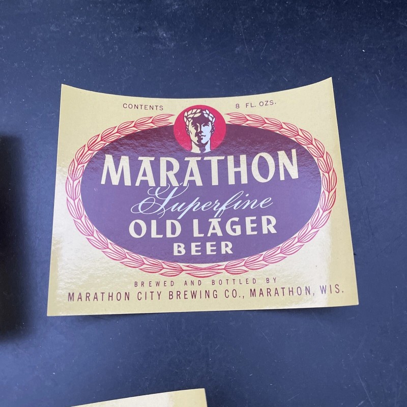 Marathon Old Lager 3- Marathon Superfine Old Lager Beer Labels 8 OZ Marathon City Brewing