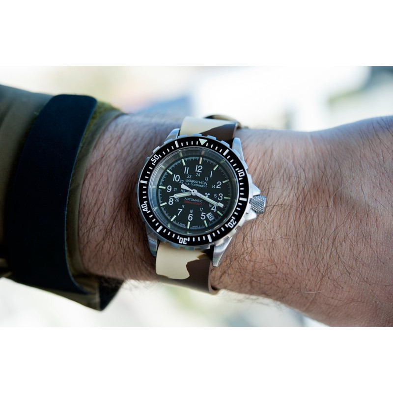 MARATHON WW005013CBR 20mm Camouflage Divers Model Watch Band. One Piece Construction (Brown). Made in Italy.
