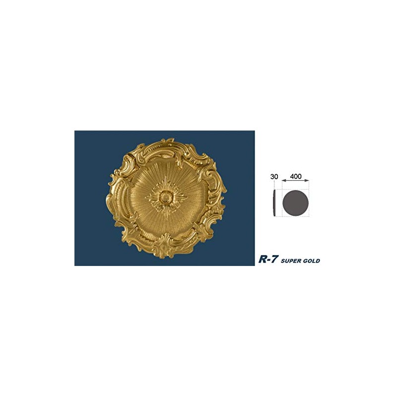 • Stylish ceiling rose for chandelier decoration and wall decoration - stucco rosette R-07 - dimensions: 400 x 400 x 30 mm, colour: super gold, material: expanded polystyrene, density: approx. 50 kg/m³