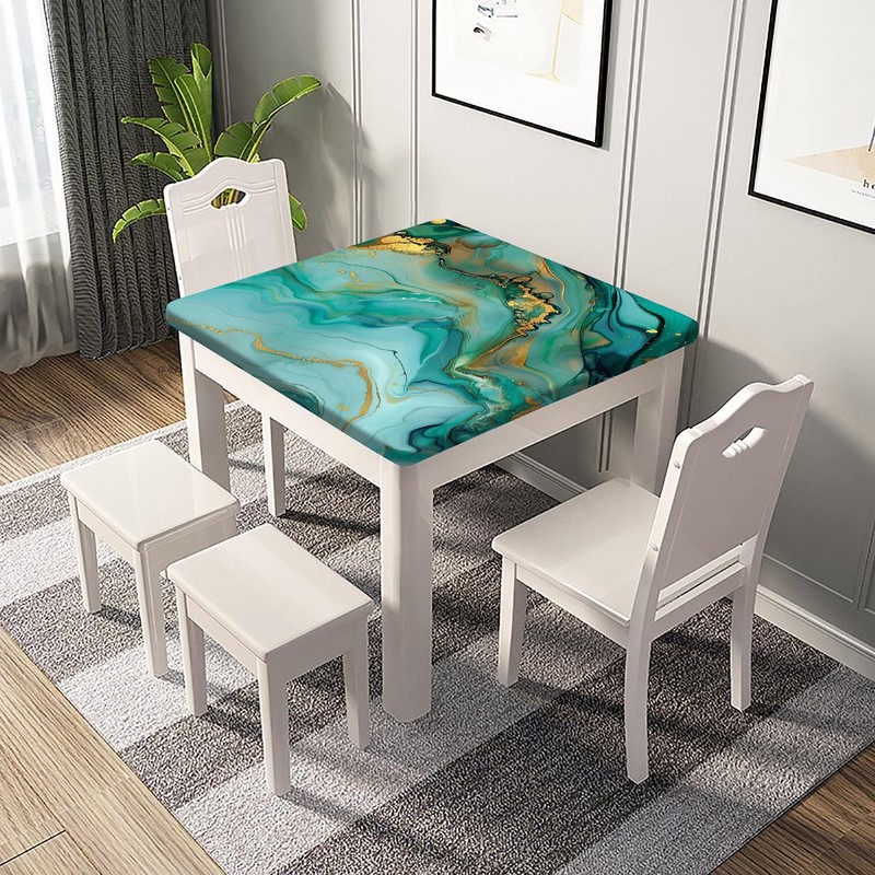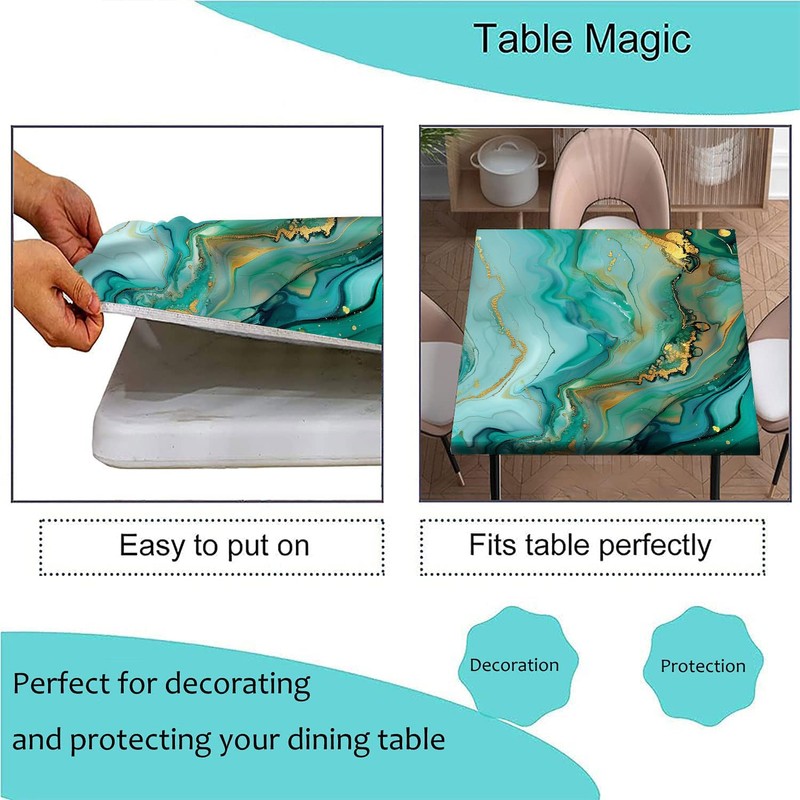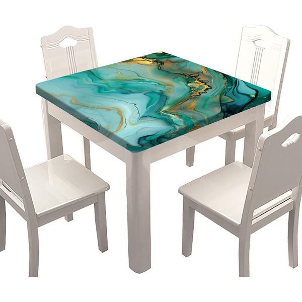 Marble Fitted Tablecloths Square, Gold Green Marble Elastic Edge Home Decor T...