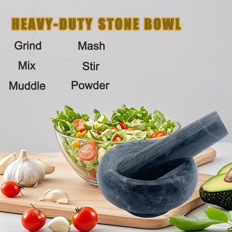 - 【Versatile】This robust marble mortar and pestle set is ideal for grinding dry and wet ingredients. It easily handles tasks like making homemade guacamole, pesto, and salsa, as well as easily crushing garlic, pepper, ginger, nuts, herbs, spices, and more. It allows you to fully enjoy the joy of handcrafted gourmet cooking.