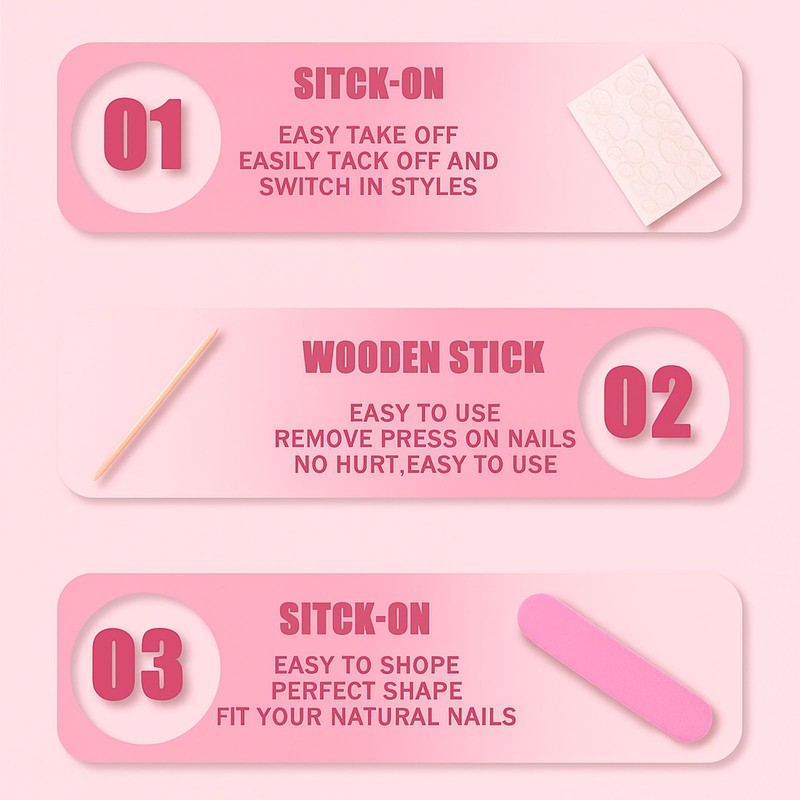 - 🌟[Professional Application Kit] Each set includes Accessory Tools, a buffer file, and simple instructions for easy use. The professional-grade adhesive keeps your press on nails secure for up to 3 weeks, yet allows for clean removal when you’re ready for a new design.