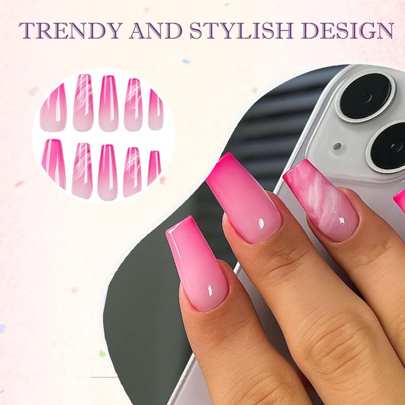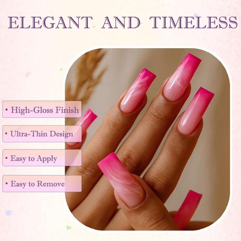 - ✨[Premium ABS Material] Crafted from durable ABS and acrylic composite, these fake nails are non-toxic, odour-free, and resistant to cracking or chipping. Their flexible yet sturdy design ensures comfortable wear and protects natural nails when applied correctly.
