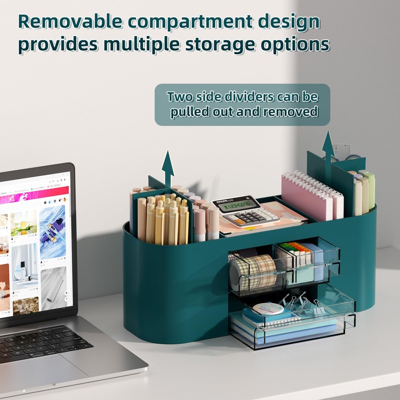 Marbrasse Desk Organizer Pen Holder for Desk with 3 Drawers, Multi-Functional Pencil Holder, Desk Organizers and Accessories with 7 Compartments for Home, School, Classroom (Dark Green)