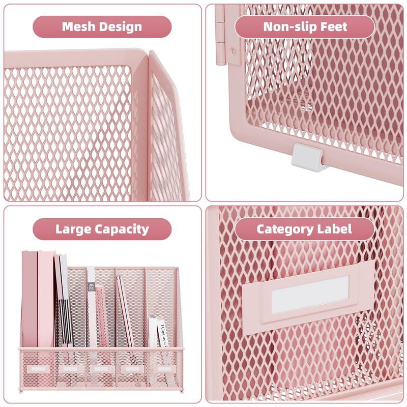 Marbrasse File Organizer for Desk,Desk File Organizer with 5 Vertical Compartments Mesh Magazine File Holder for Office School