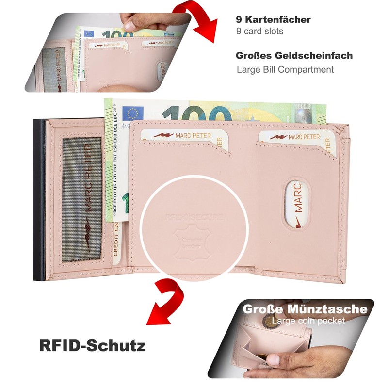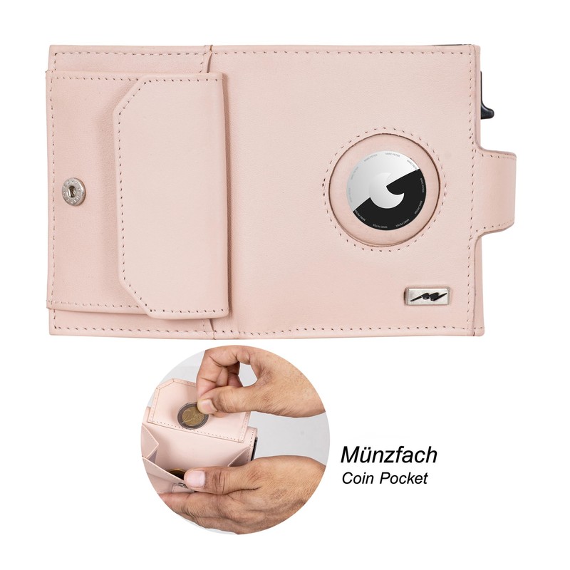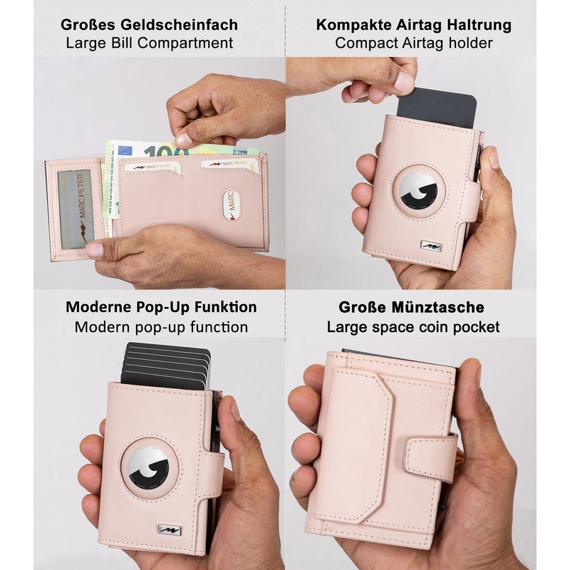 Marc Peter® Chicago Leather Push Air Slim Wallet, Airtag Wallet with Coin Compartment, RFID Protection, Small Mini Wallet, Leather, rose, Classic