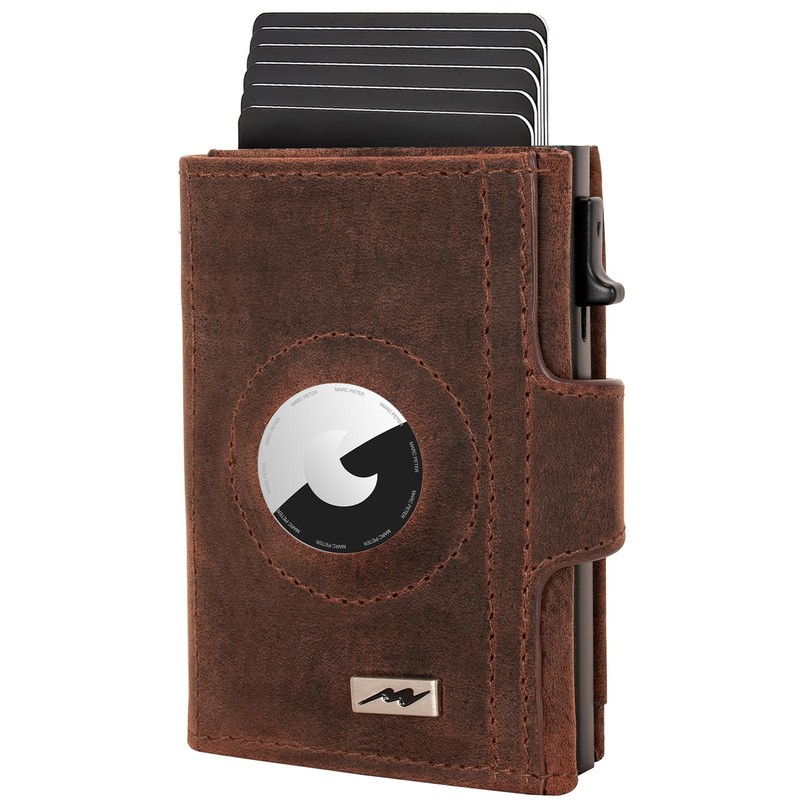 Marc Peter® Chicago Leather Push Air Slim Wallet - Airtag Wallet with Coin Compartment - RFID Protection Small Mini Wallet Leather, Vintage Brown, Casual