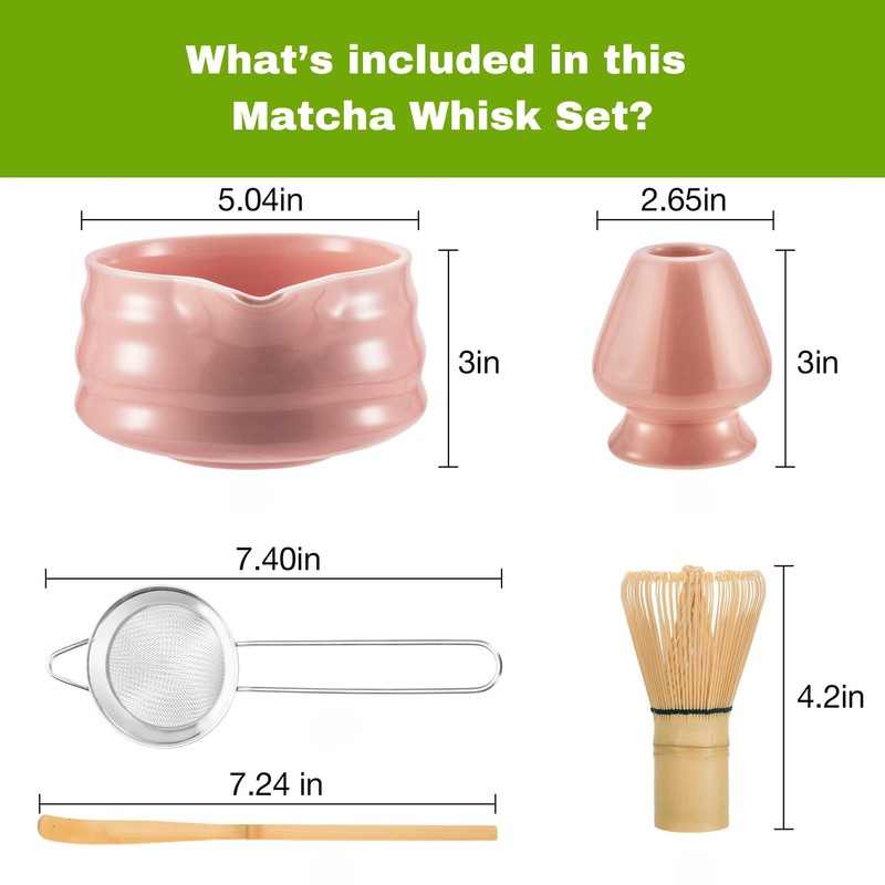- PERFECT MATCHA GIFT SET- You will love this gorgeous matcha whisk set. This matcha kit is a great way to impress any matcha lover. You deserve a matcha set that makes you feel special every day. This matcha set whisk and bowl comes with a matcha whisk, matcha bowl with spout, matcha sifter, matcha spoon and matcha whisk holder.