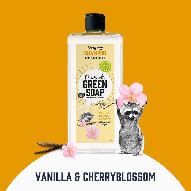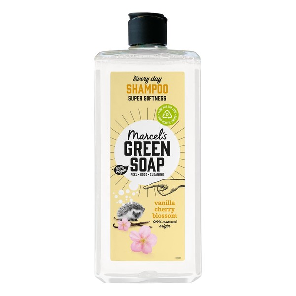 Marcel's Green Soap Shampoo - Vanilla & Cherry Blossom Scent, Enriched with Natural Oils, 97% Natural, 98% Biodegradable, Vegan, 300 ml - Gentle Care for Hair & Planet