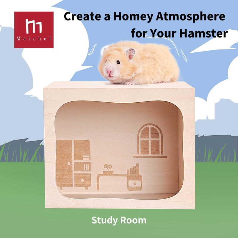 Marchul Hamster Hideout Wooden House Chamber Small Animals Pets Tunnel Exploring Toys for Dwarf Hamsters, Syrian Hamsters, Gerbils, Hedgehogs, Rats, Mice (Study Room)