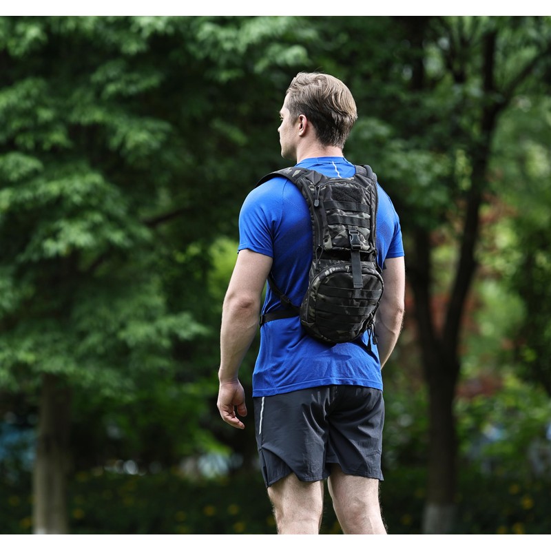 - Practical Functions: 1 main pocket fits up to 3L water reservoir with either large or small opening. 2 external pockets for storing personal belongings wallet, gadget, towel, phone, keys. The MOLLE system allows you to carry more items.