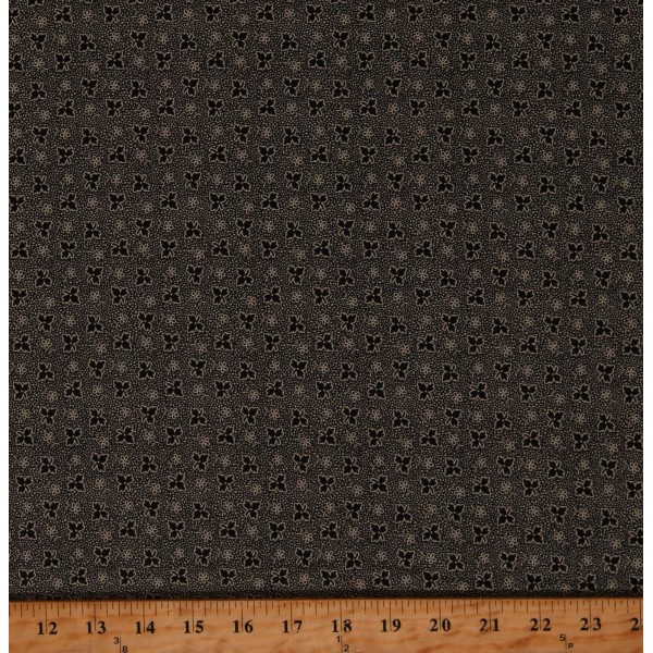 Cotton Paula Barnes Leaves Flowers Plants Speckles Dots Patterned Design Historical Black Cotton Fabric Print by the Yard (R220333-BLACK)