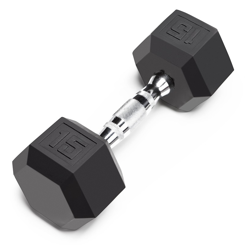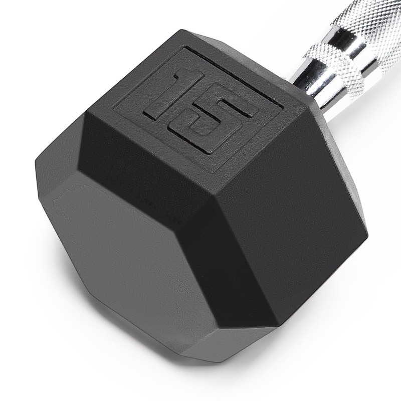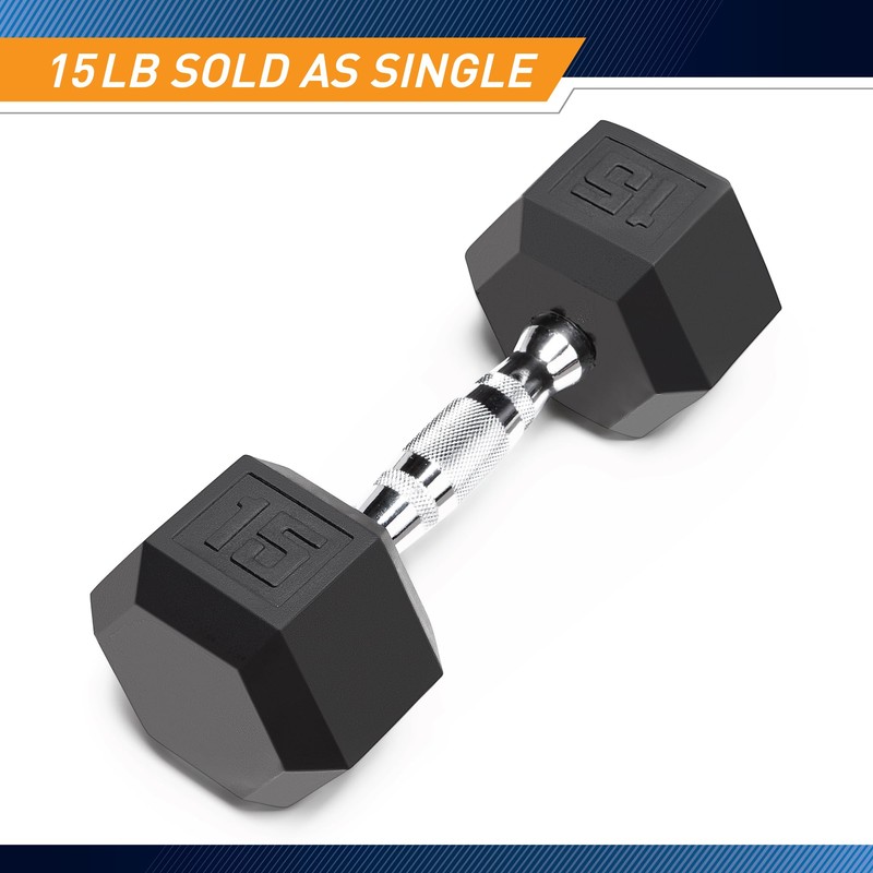 - Variety of Size Selections - Available in 5-, 10-, 15-, 20-, 25-, 30-, 35-, 40-, 45-, and 50-lbs. This listing is for single (1pc) rubber hex dumbbell