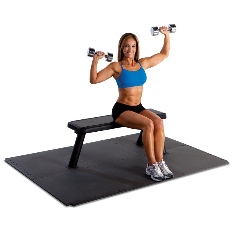 Whether you’re a certified gym buff or a beginner who’s taking the physical route to wellness, this gym accessory is guaranteed to give you the best from your training experience! This floor mat is built to precise standards with premium quality high-density foam that boasts a nonslip surface. The anti- fatigue facilitates efficient pressure and weight distribution throughout its cushioned structure to reduce the amount of stress and jarring your body experiences during exercise. Its nonslip surface prevents the tiles or wood floors from budging, ensuring secure placement of exercise machines; and its sturdy construction effectively resists damages against high-impact stress caused by dropping equipment during workouts. This protective mat is ideal to use in home gyms, workshops, garages, playrooms, and other recreational areas. Place a treadmill, elliptical, stair climber, stepper, stationary bikes or other cardio machines over the mat to enjoy quiet and jarring free exercises such as yoga, tumbling, gymnastics, aerobics, martial arts, or simply stretching, physical therapy, and core workouts. Featuring interlocking edges, this mat lets you connect additional mats onto its side to form an extended floor protector for larger equipment. The mat’s connective strips allow you to seamlessly join several mats together for maximum coverage. This connecting mat is designed to withstand the weight of high-end machines such as multifunctional home gym, smith cage, squat rack or power tower while reducing noise and vibration and giving you a more efficient and comfortable workout session. Don’t let anything hold you back from taking your exercise routine to the next level. Experience the utmost in convenience with the Marcy Fitness Equipment Mat.