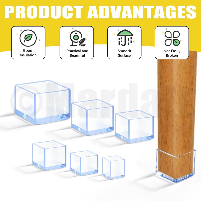 💯 The square chair leg floor protectors are made of rubber material, rubber chair leg caps can protect your hardwood and tile floors from wear and scratches, no scratches and no noise.