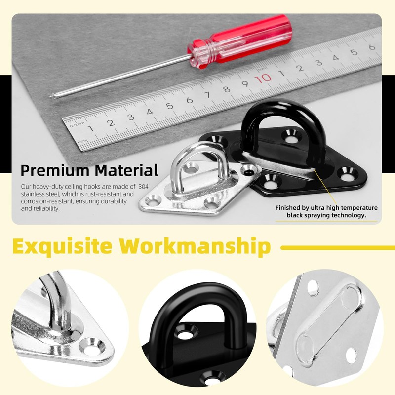 - Size details: this M8 stainless steel pad eyelet plate is 48 x 48 mm/1.9 x 1.9 inches, wire diameter: 8 mm/0.31 inches, the mounting screws are 1.45 inches/37 mm long. Each ceiling hook can hold up to 440 lbs, good load capacity can hang various large objects and optimise the use of space.