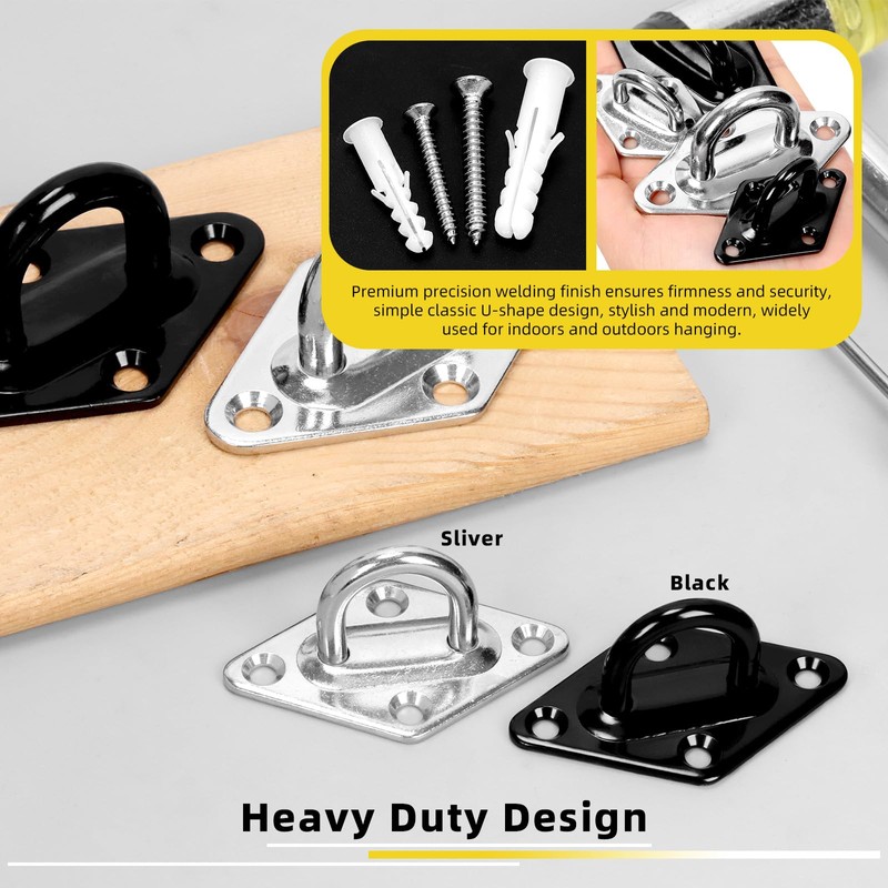 - Easy to Use The M8 heavy duty pad eye plate with a closed hook has a good structure, which is not easy to break and can bear a large weight. Equipped with screws and anchors to fix it firmly in place of use. Their surfaces are bright and smooth, free of burrs.