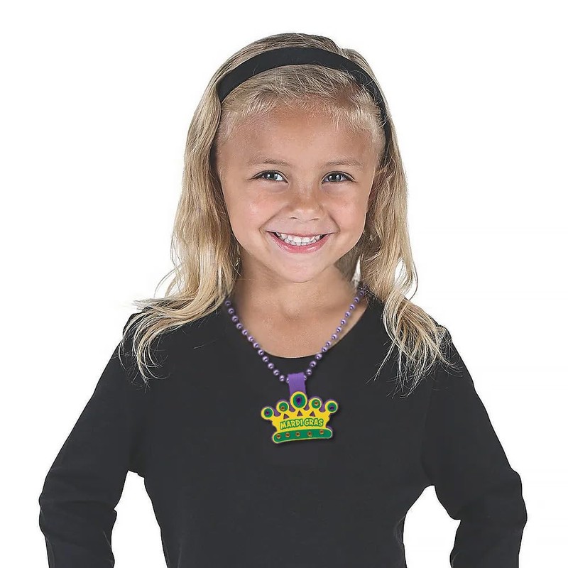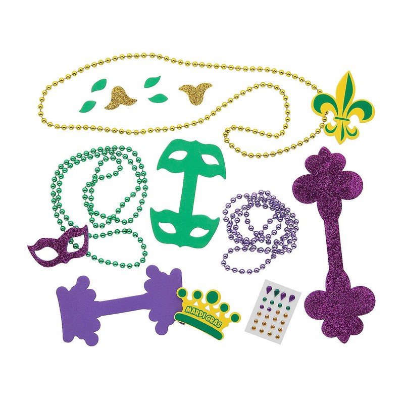 - Nothing says Mardi Gras more than Mardi Gras beads! This craft for kids is a fun way to celebrate the holiday, and they'll have their very own necklaces to wear when the activity is complete. Includes self-adhesive foam pieces, plastic rhinestones and plastic beads. 30" necklace with 2 1/2" charms and 5mm beads. Makes 6. All craft kit pieces are pre-packaged for individual use. Kits include instructions.