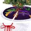 Mardi Gras Carnival Calligraphy Face Mask Purple Green on Black 48" Large Tree Skirt with Tassel Lace, Circular Tree Mat with Fringed Edge Ornament Gift for Christmas Xmas Party Holiday Decoration
