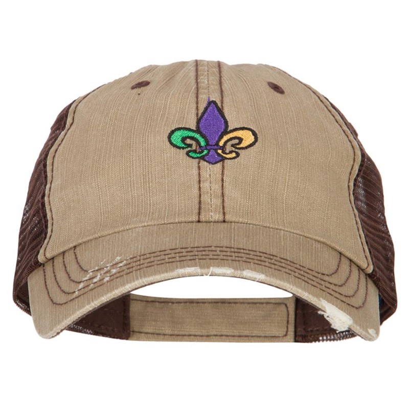 Mardi Gras Fleur de Lis Embroidered Low Profile Mesh Cap - Khaki Brown OSFM