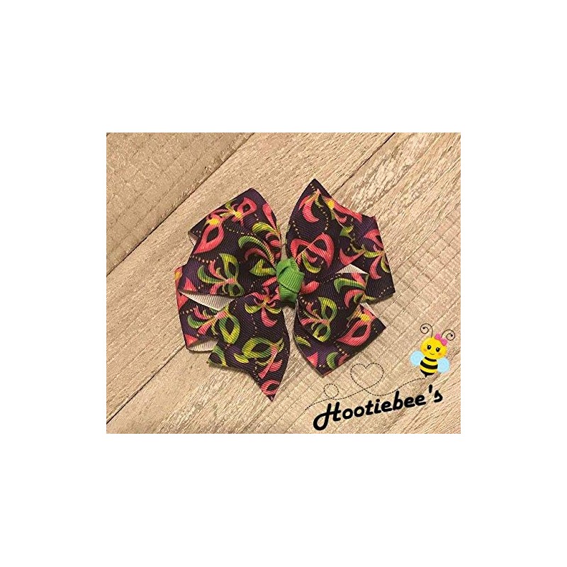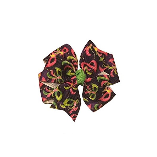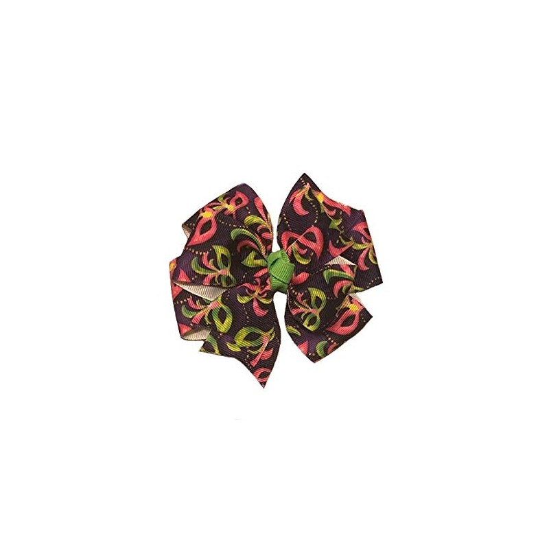This is a 2-layer hair bow. It can be mounted on a large (3") french barrette OR a partially lined alligator clip. The bow measures approximately 4 to 4.5 inches wide. All my bows are heat sealed for NO FRAYING. All items come from a smoke-free home.