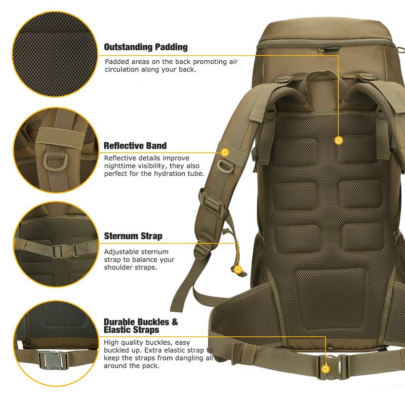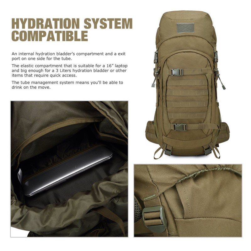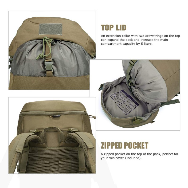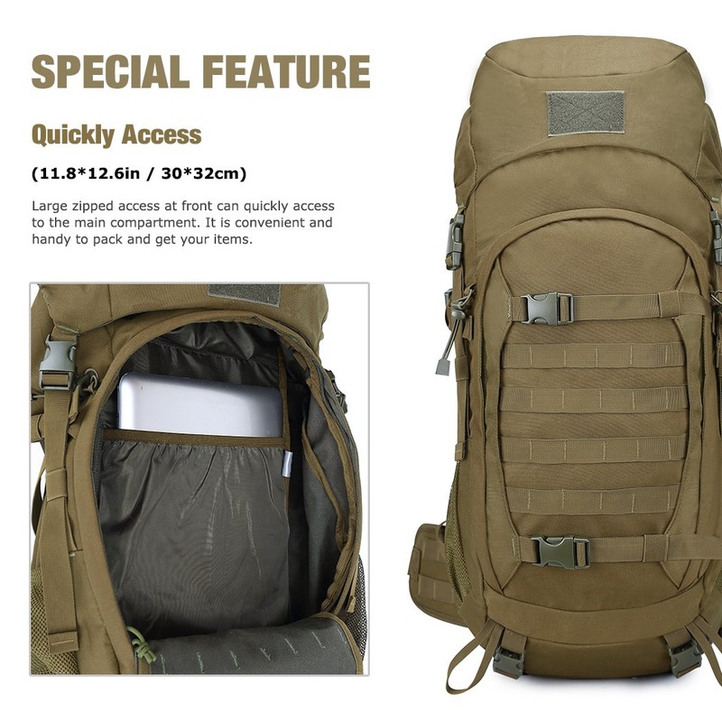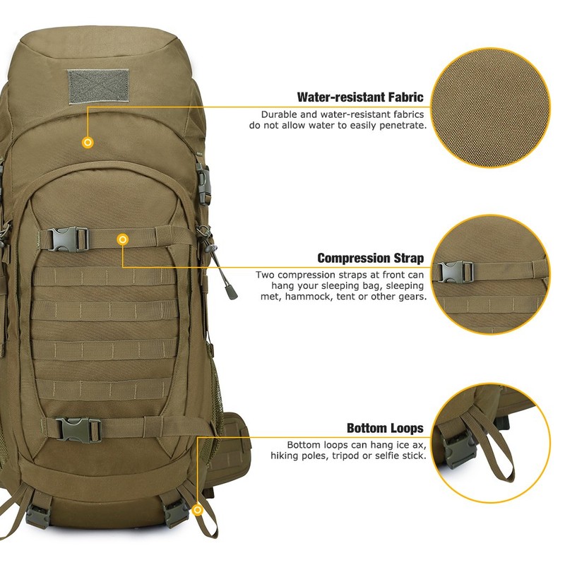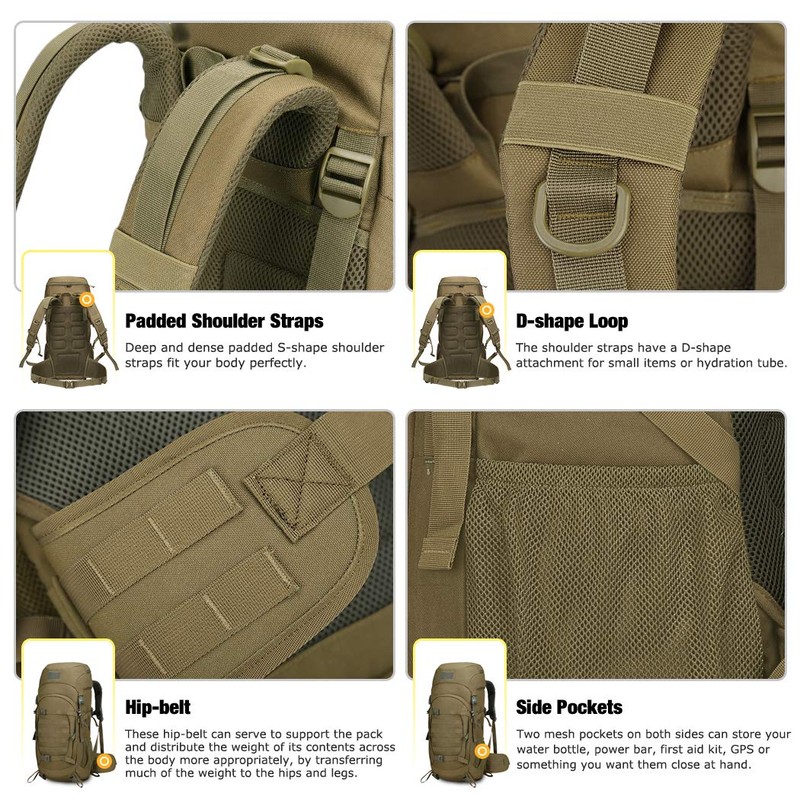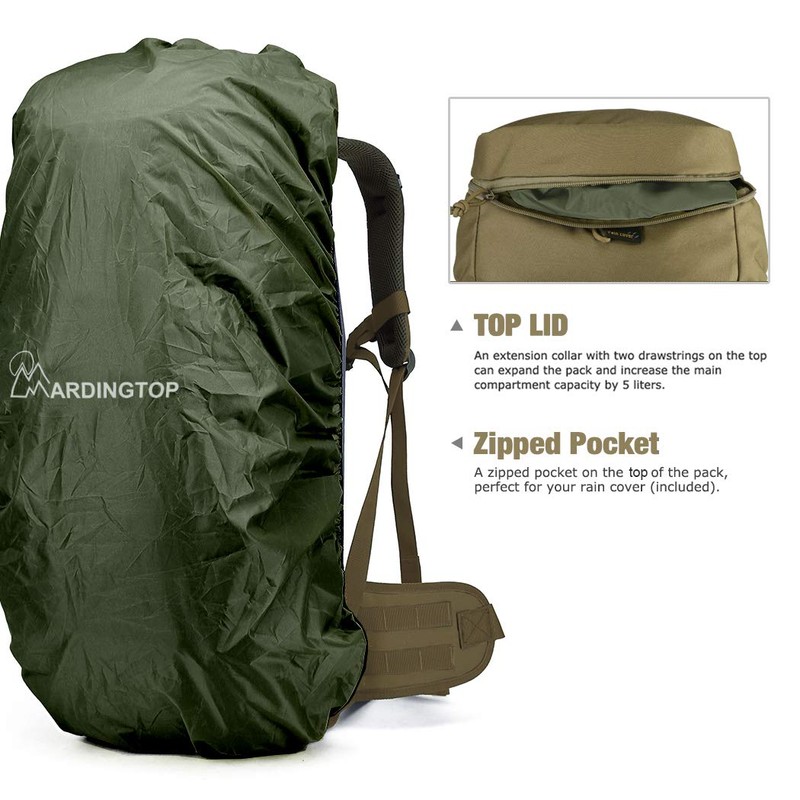 Mardingtop 50L Molle Hiking Internal Frame Backpacks with Rain Cover for Camping,Backpacking,Travelling(Khaki)