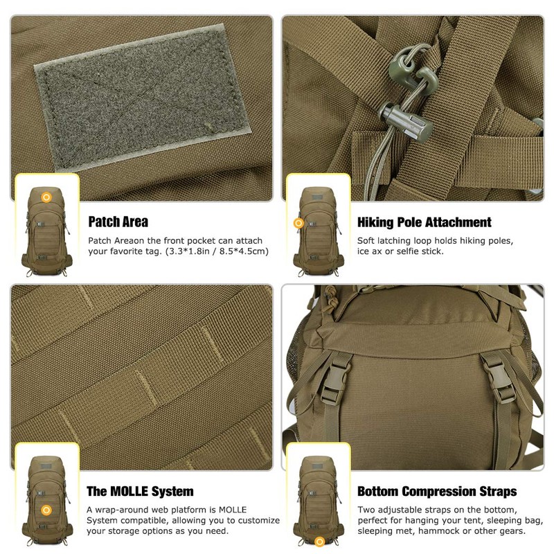 • 【SUITS】- The hiking backpack is well used as 3 day assault pack for hiking,trekking,camping,climbing,traveling.