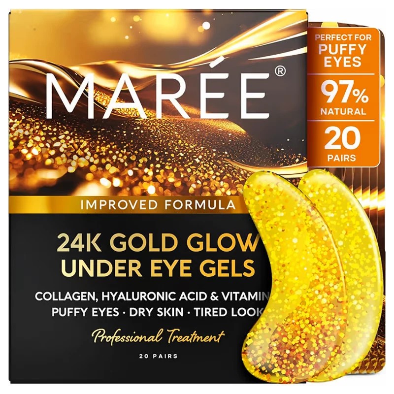 - 👑 Professional 24K Gold Eye Gels - Unveil a new level of radiance with our Maree 24K gold under eye gels. Treat yourself to a spa-like experience without leaving your home. These eye gels for dark circles and puffiness don't just treat – they redefine your self-care ritual, enhancing your natural beauty with the power of gold.