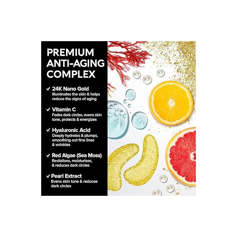 - 👑 Revolutionary Eye Care Formula - Embrace the benefits of our 24K gold eye gels enriched with hydrolyzed collagen, hyaluronic acid, and premium pearl extract. This exceptional blend targets the very essence of tiredness and puffiness, while also removing dark circles. With each application of our under eye gels experience the rejuvenation that leaves your under eyes looking revitalized and youthful.