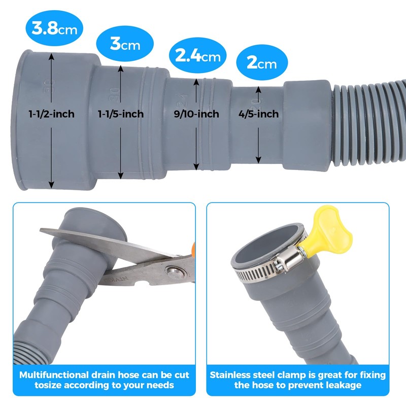 • 【Durable & Leak-Proof Design】 Made from high-quality plastic, this corrugated flexible drain pipe is built to withstand daily use. The washing machine drain hose seal ensures a tight, leak-proof connection, preventing kinking and leaking. Ideal for tight spaces and complex layouts, it works perfectly as a dishwasher hose extension, washer machine drain hose, or washing machine discharge hose.