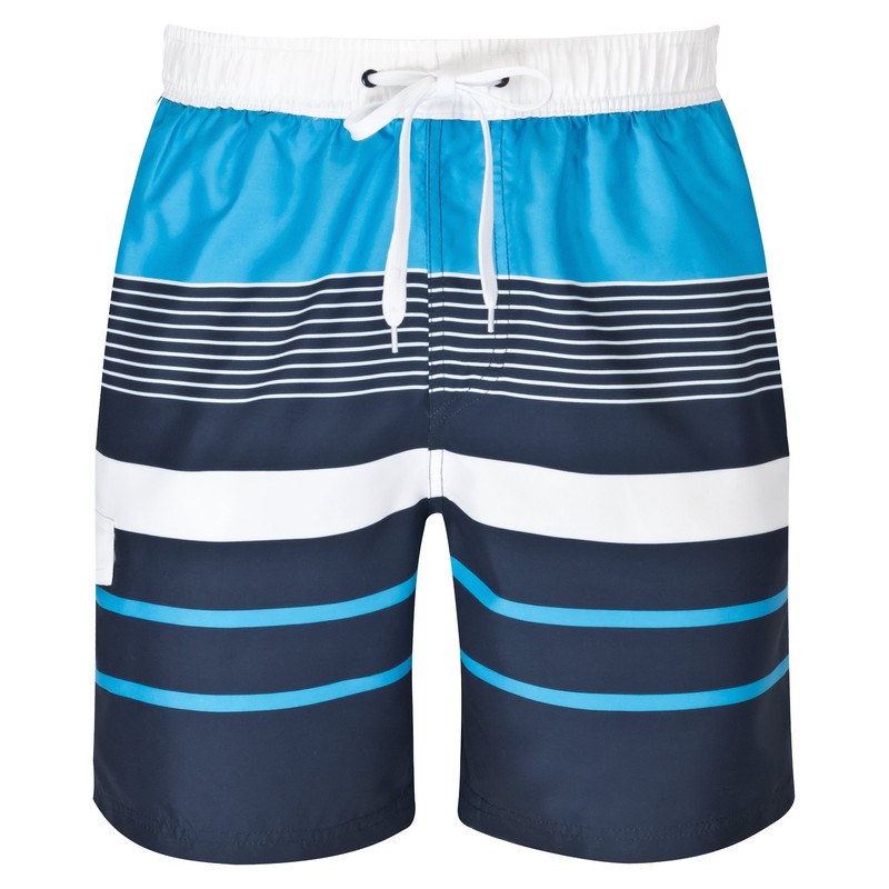- Swimming shorts in black, grey, blue and other colours with a modern pattern.