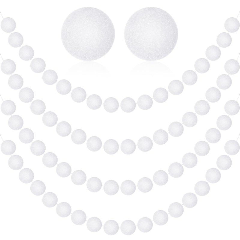 MARFOREVER 4 Pack 26.3 Ft Winter White Pom Pom Garland Ornaments, 30 Balls Christmas Felt Garland Hanging Supplies for Winter Wonderland Christmas School Classroom Fireplace Wall Home Party Decoration